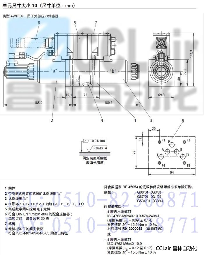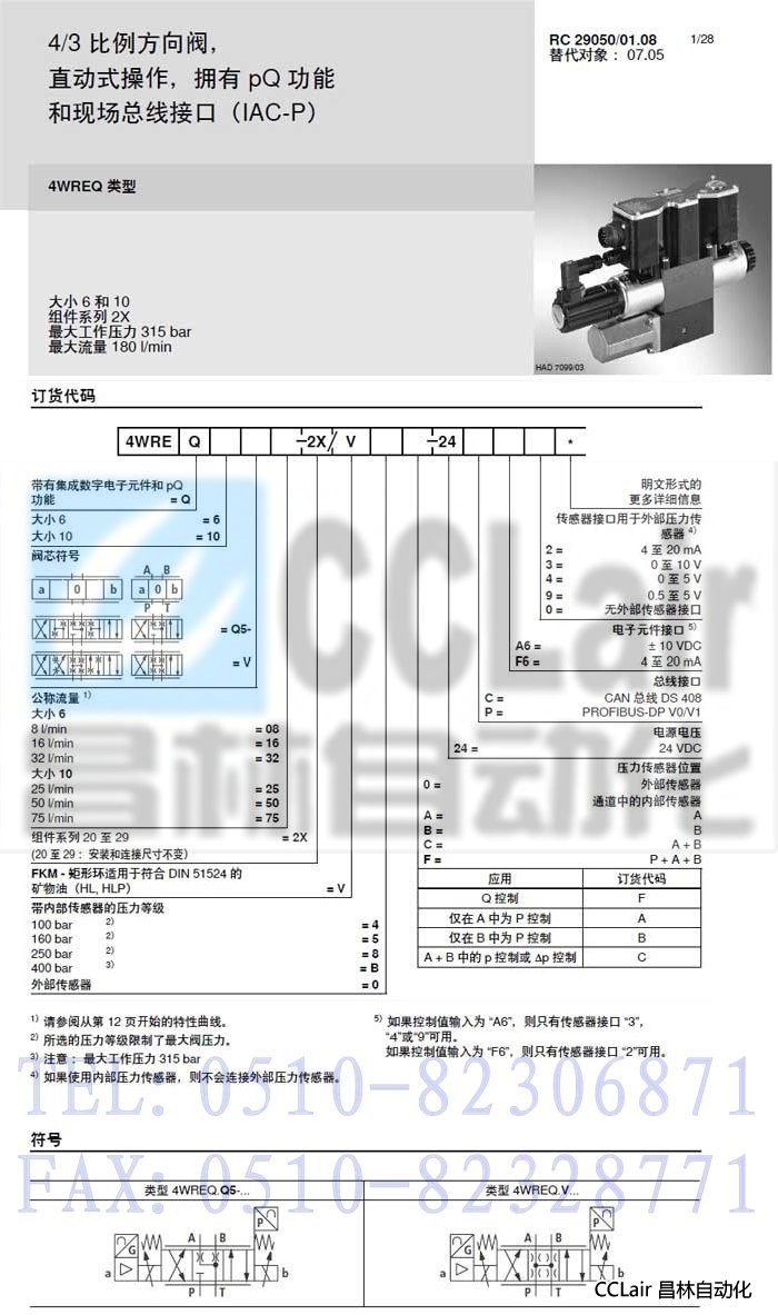 4WREQ10Q5-75-2X/V8F-24CA60,4WREQ10V25-2X/V8F-24CA60,比例方向閥,力士樂REXROTH,德國力士樂 |