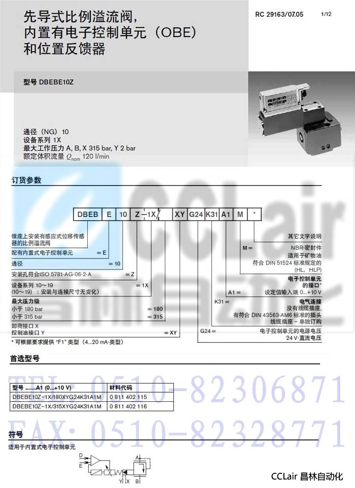 DBEBE10Z-1X/180XYG24K31A1M,DBEBE10Z-1X/315XYG24K31A1M,先導(dǎo)式比例溢流閥,力士樂REXROTH,德國(guó)力士樂