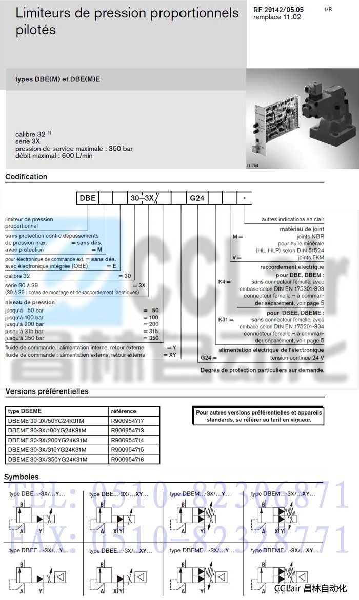 DBEME30-3X/315YG24K31V,DBEME30-3X/315YG24K31M, 先導(dǎo)式比例溢流閥,力士樂REXROTH |