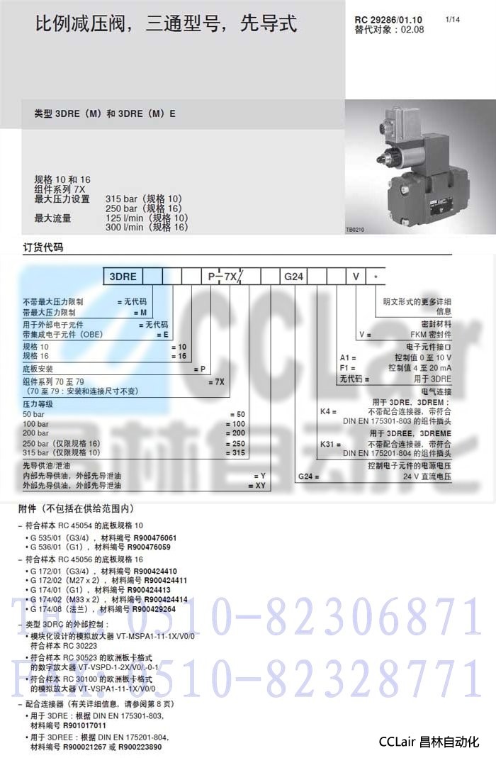 3DREME16P-7X/50YG24K31A1V,3DREM16P-7X/50YG24K4V,先導式比例減壓閥,力士樂REXROTH,德國力士樂 |