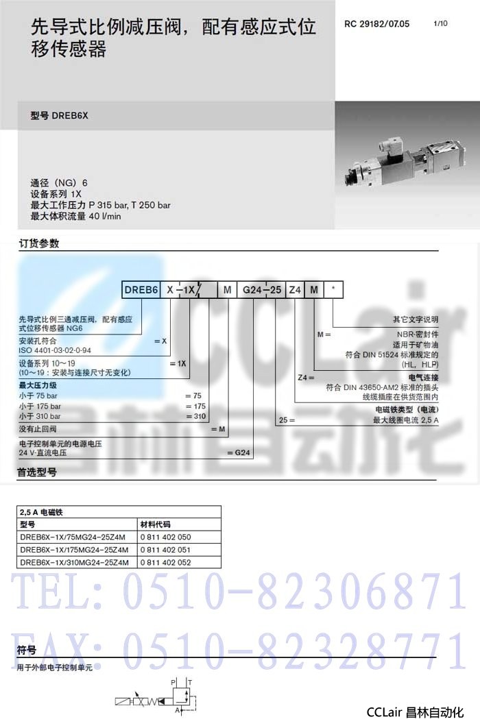 DREB6X-1X/75MG24-25Z4M,先導式比例減壓閥,力士樂REXROTH,德國力士樂