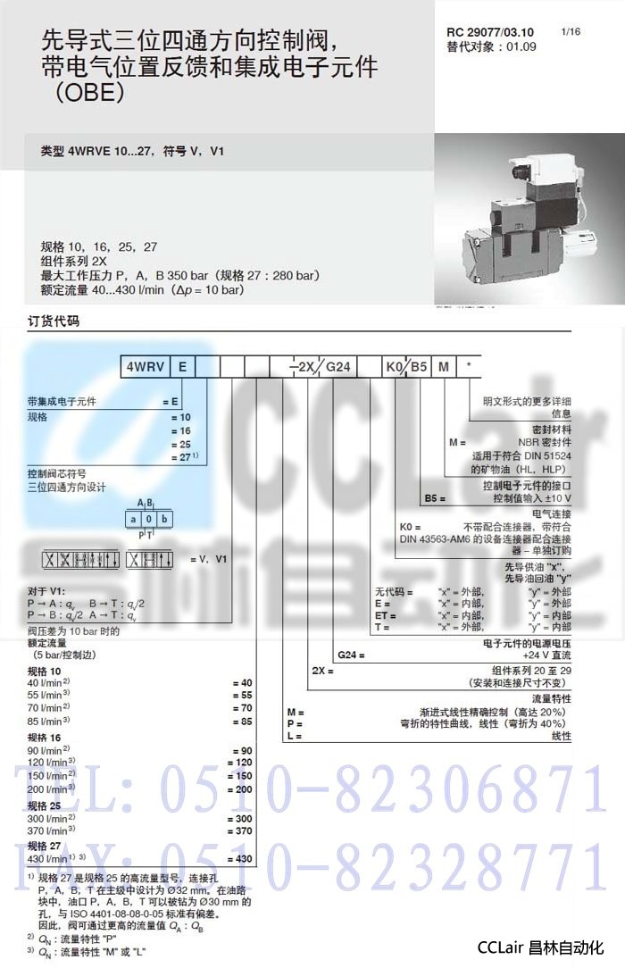 4WRVE27V1-430M-2X/G24K0/B5M,,先導(dǎo)式方向控制閥,力士樂REXROTH,德國力士樂