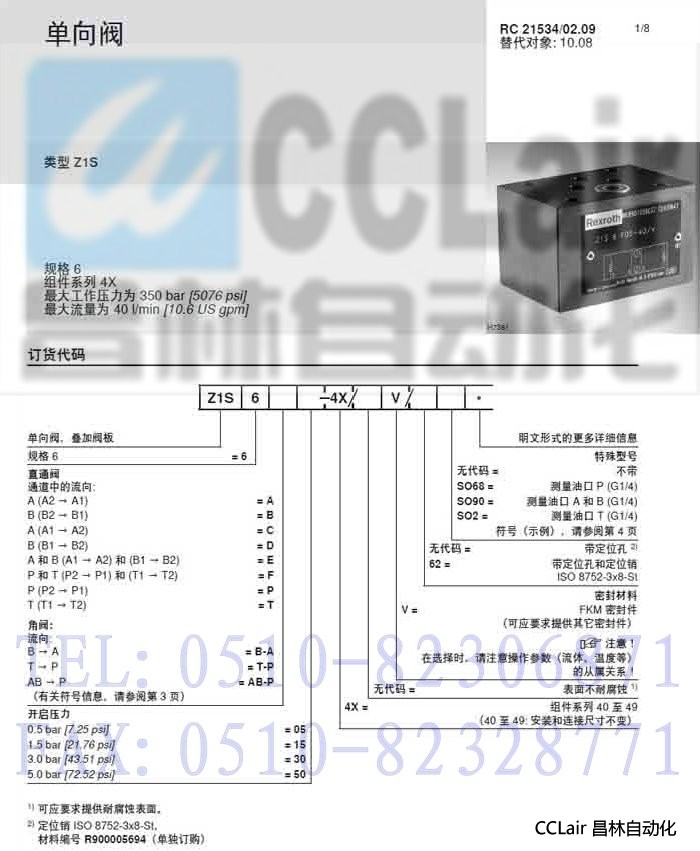 Z1S6T30-4X/V,Z1S6T50-4X/V,Z1S6T05-4X/V/62,單向閥,力士樂REXROTH,德國力士樂