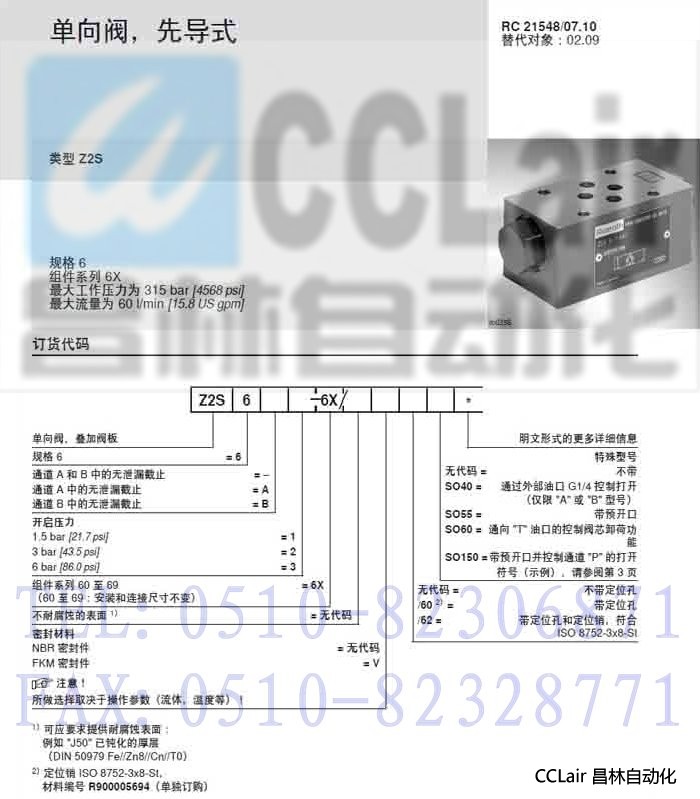 Z2S6A1-6X/,Z2S6A1-6X/V,Z2S6A2-6X/,Z2S6A2-6X/V,單向閥,力士樂REXROTH,德國(guó)力士樂