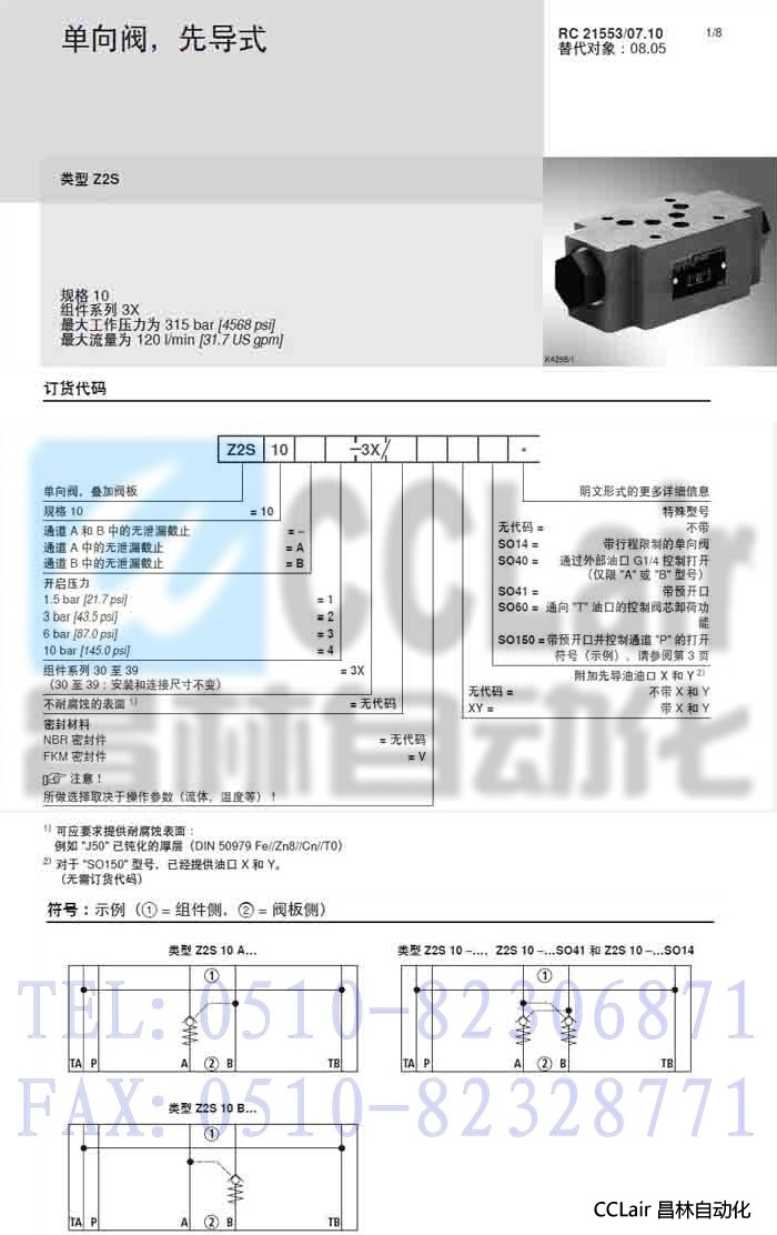 Z2S10-3-3X/,Z2S10-3-3X/V,Z2S10-4-3X/,Z2S10-4-3X/V,,單向閥,力士樂REXROTH,德國力士樂 |