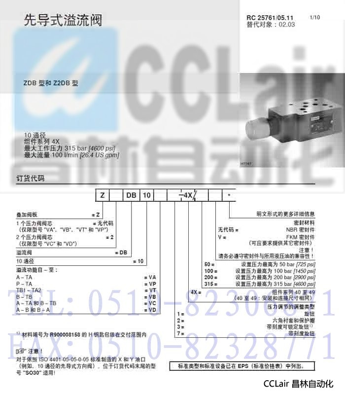 ZDB10VA1-4X/50V,ZDB10VA1-4X/100V,ZDB10VA1-4X/200V,先導(dǎo)式溢流閥,力士樂REXROTH,德國力士樂 |