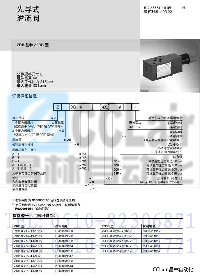 ZDB6VA3-4X/100V,ZDB6VA3-4X/200V,ZDB6VA3-4X/315V, ,先導(dǎo)式溢流閥,力士樂REXROTH,德國力士樂
