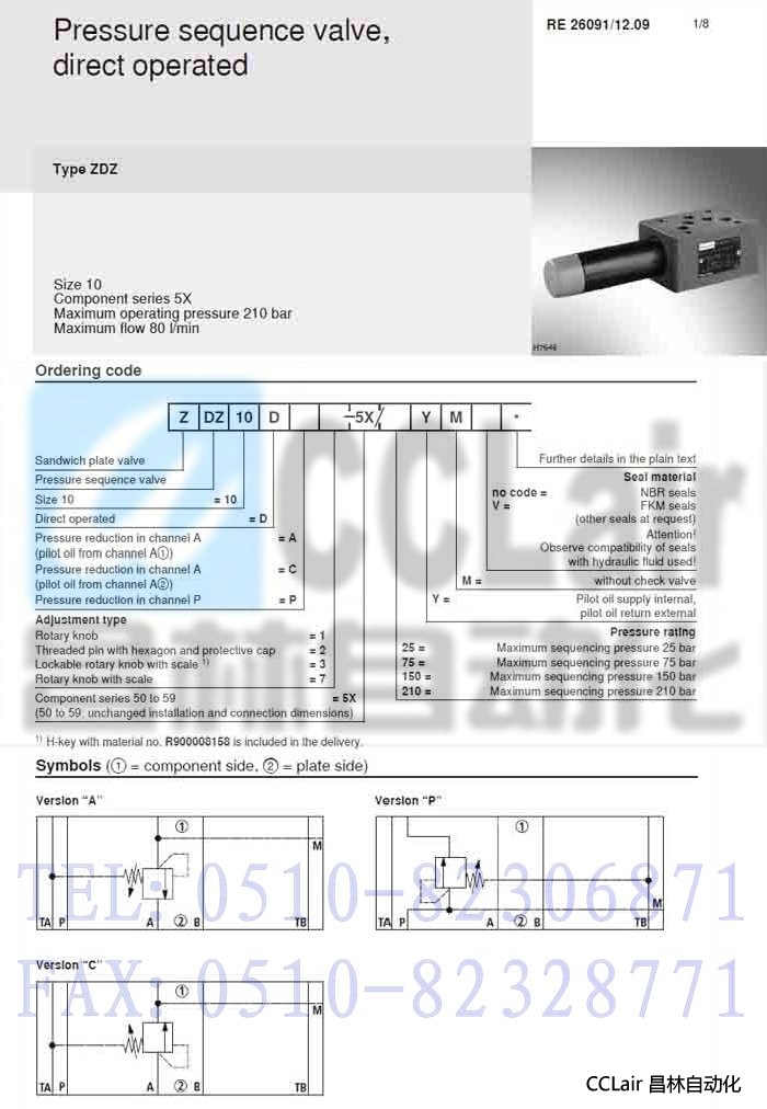 ZDZ10DP2-5X/210YM,直動(dòng)式壓力順序閥,力士樂REXROTH,德國力士樂