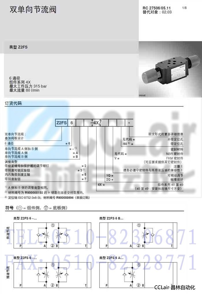R900481624 Z2FS6-2-4X/2QV,R900481623 Z2FS6-2-4X/1QV,節(jié)流閥,力士樂REXROTH,德國力士樂