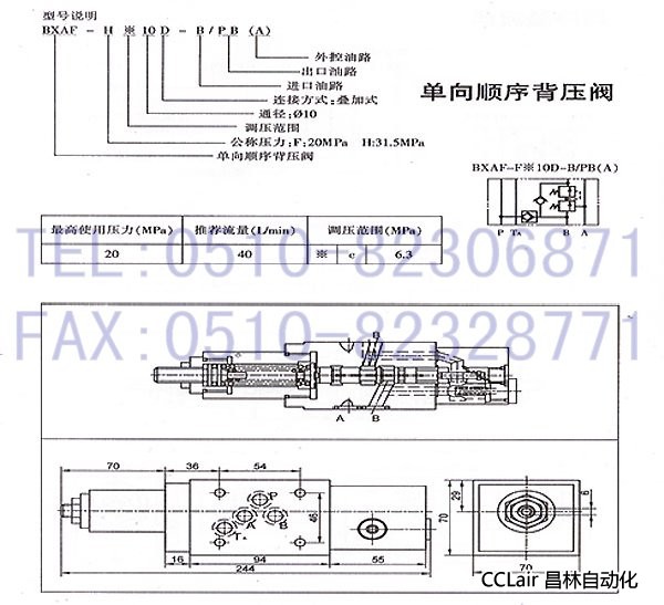 BXAF-Fc10D-B/PB(A),單向順序背壓閥