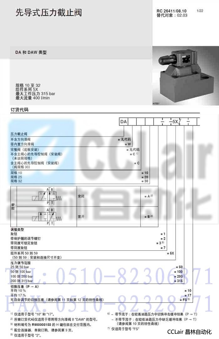 DAC2-5X/315-17Y,DAC30-2-5X/315-10,DAC30-2-5X/315-10V 先導(dǎo)式壓力截止閥,力士樂(lè)REXROTH,德國(guó)力士樂(lè)