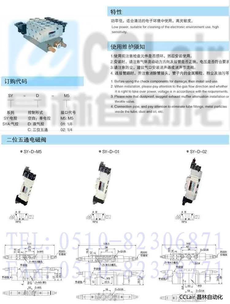 SY-D-M5,SY-D-01,SY-D-02,二位五通電磁閥
