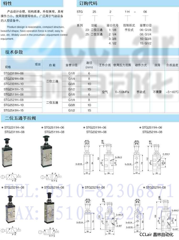 STG2511H-06,STG2521H-08,STG2531H-10,STG2541H-15,二位五通手拉閥
