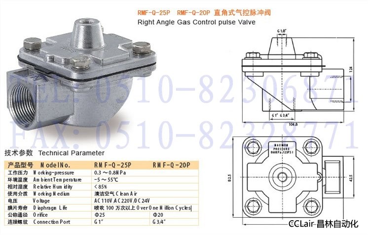 RMF-Q-25P,RMF-Q-20P,直角式氣控脈沖閥