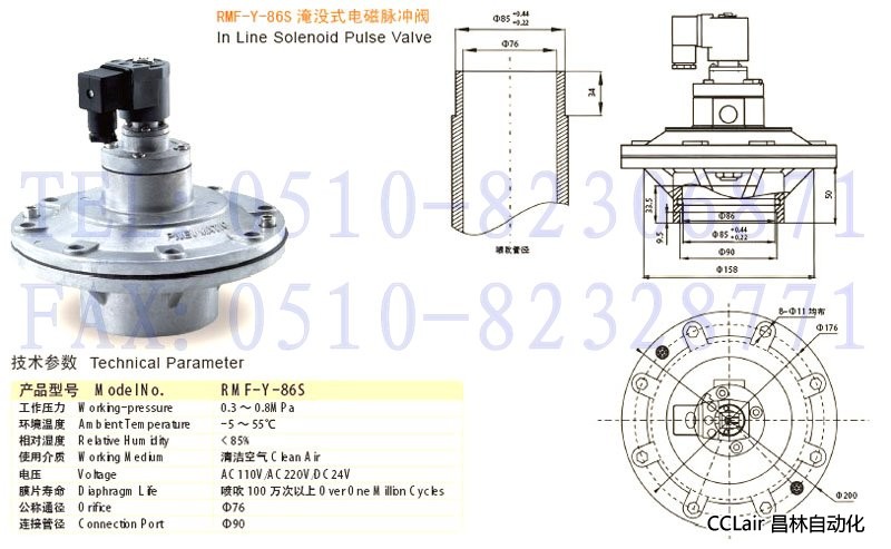 RMF-Y-86S,淹沒(méi)式電磁脈沖閥