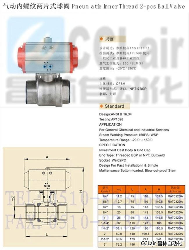 1/4",3/8",1/2",3/4",1",1-1/4",1-1/2",2",2-1/2",3",氣動內螺紋兩片式球閥