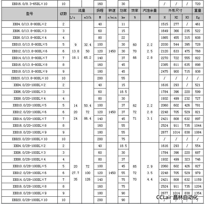 XBD2.36/1.72-40DL×2,XBD3.54/1.72-40DL×3,XBD4.72/1.72-40DL×4, |