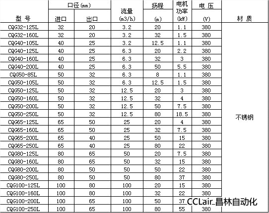 2. CQG立式磁力驅(qū)動(dòng)泵進(jìn)出口徑