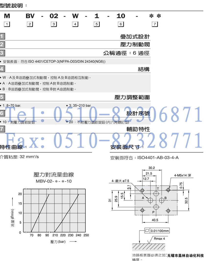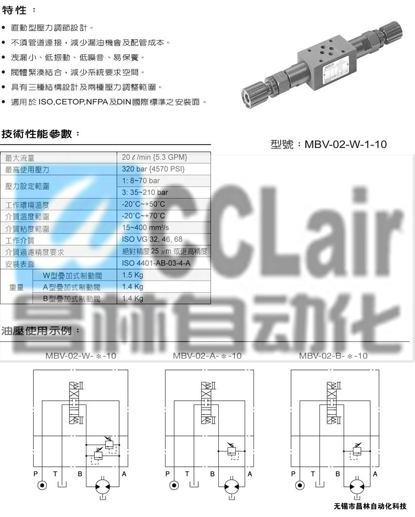 MBV-02-W,MBV-02-A,MBV-02-B,疊加式制動(dòng)閥,