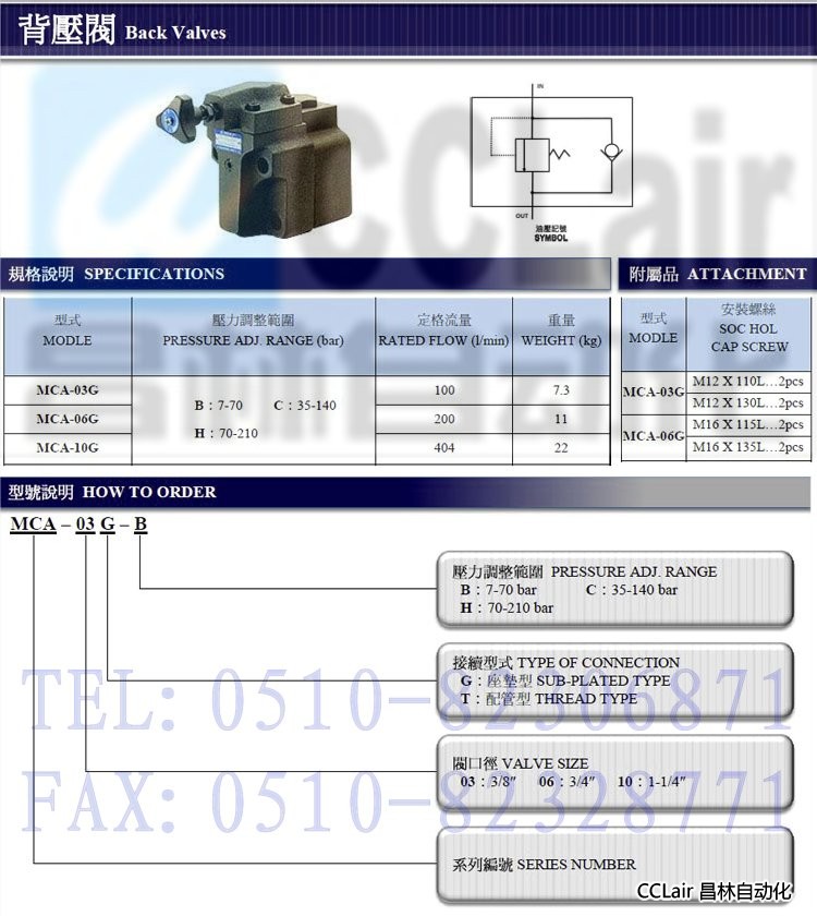 MCA-03G-B,MCA-03G-C,MCA-03G-H,MCA-06G-B,背壓閥