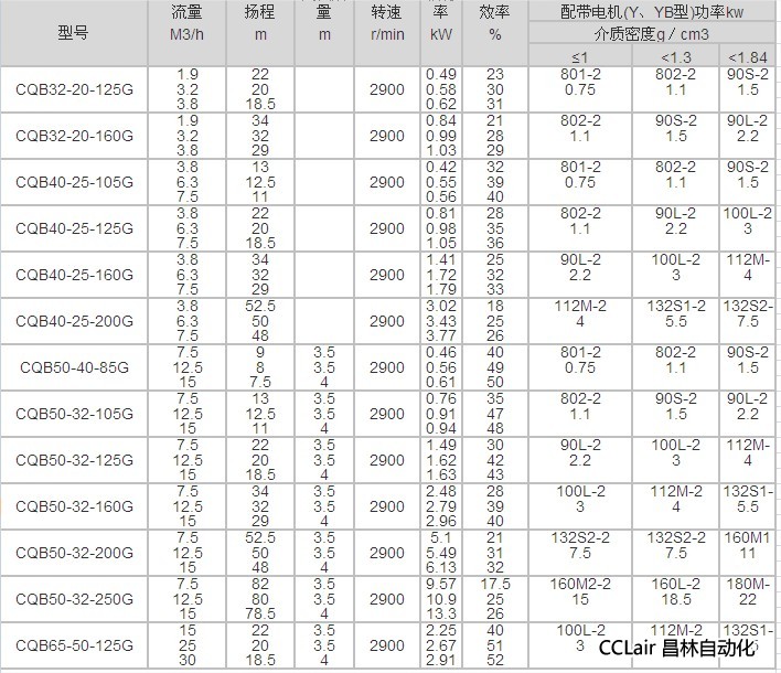 CQB65-40-250G,CQB80-65-125G,CQB80-65-160G,CQB80-50-200G,