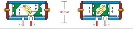 當(dāng)壓縮空氣從A孔進(jìn)入兩活塞之間的中腔時(shí),由于壓力作用使兩活塞分離。