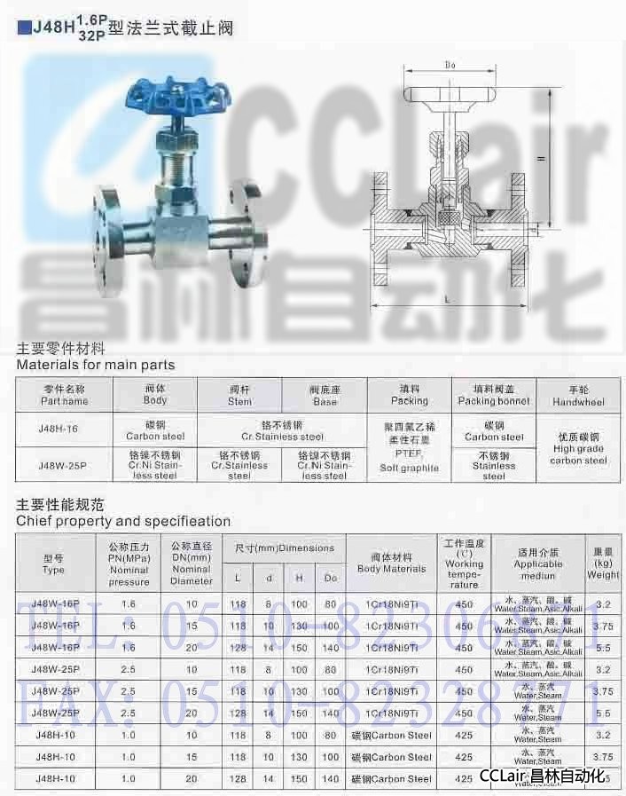 J48W-16,J48W-25,J48W-16P,J48W-25P,J48W-40,J48W-40P,J48H-10,法蘭式針型閥 |