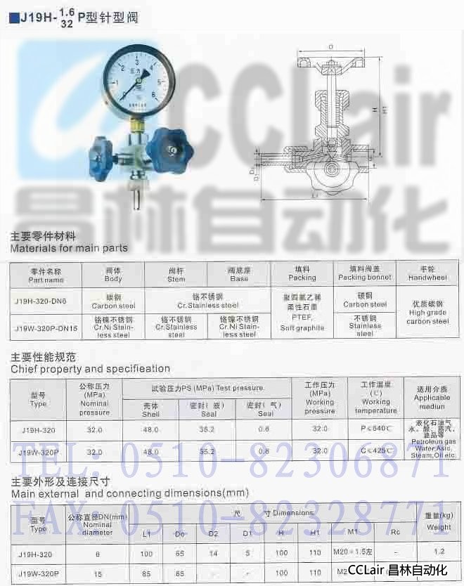 J19H-320,J19H-320P,儀表針型閥