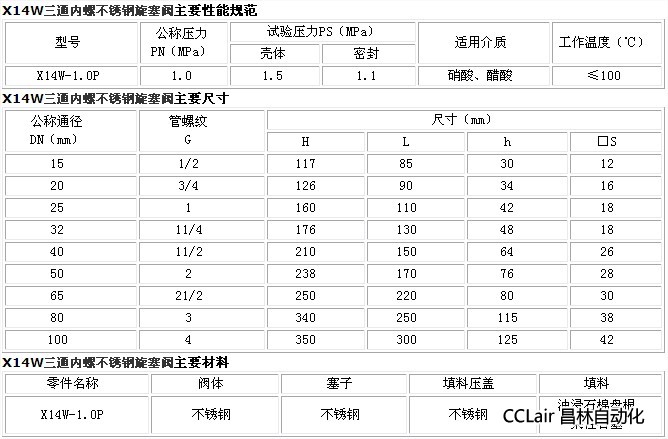 X14W-1.0P,三通內螺不銹鋼旋塞閥