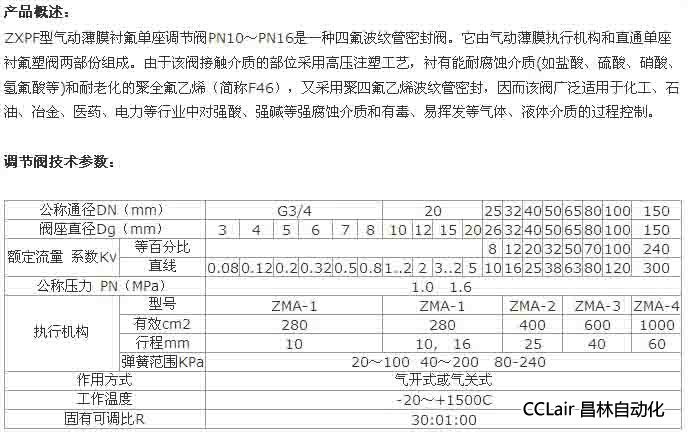ZXPF-10,ZXPF-16,氣動薄膜襯氟單座調節(jié)閥