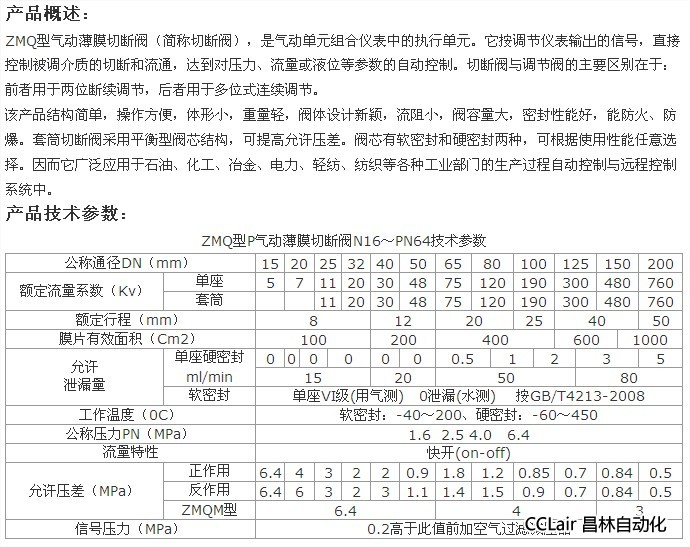 ZMQ-16,ZMQ-25,ZMQ-40,ZMQ-64,P氣動(dòng)薄膜切斷閥