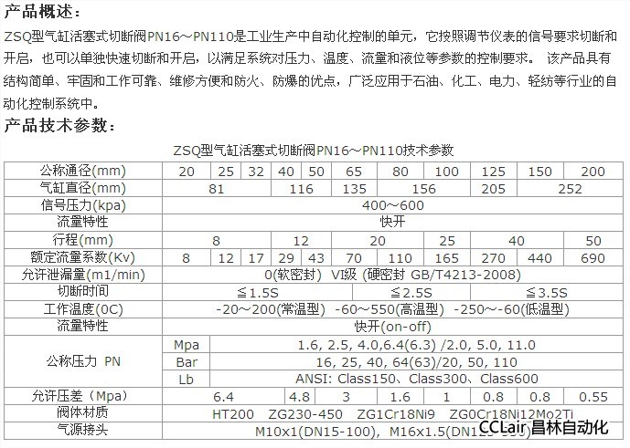 ZSQ-16,氣缸活塞式切斷閥
