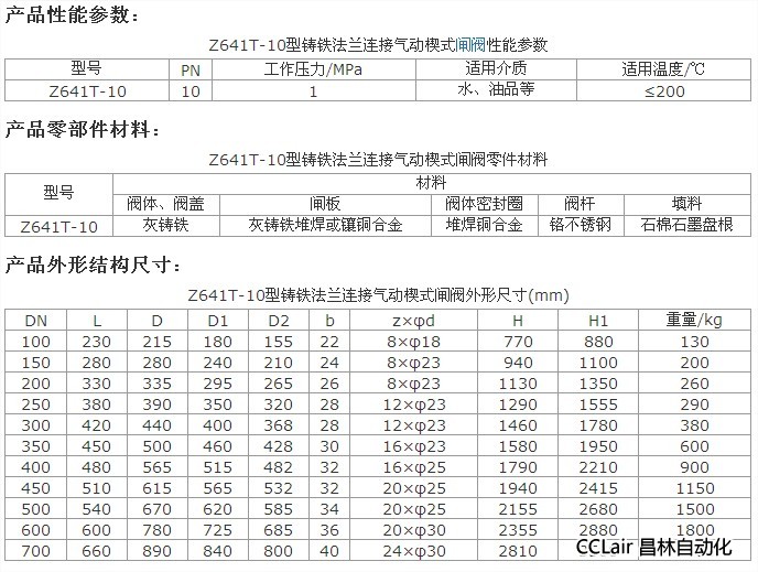 產(chǎn)品說(shuō)明 Z641T-10 型氣動(dòng)楔式閘閥:氣動(dòng)、法蘭連接、明桿楔式剛性單閘板,閥座密封面材料為銅合金,公稱(chēng)壓力 PN10,閥體材料為灰鑄鐵的閘閥。