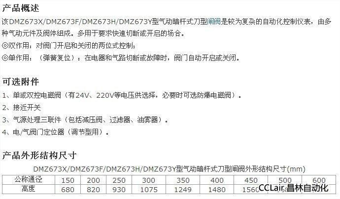 DMZ673X-6,DMZ673X-10,DMZ673X-16,DMZ673H-6,DMZ673H-10,氣動暗桿式刀型閘閥 |