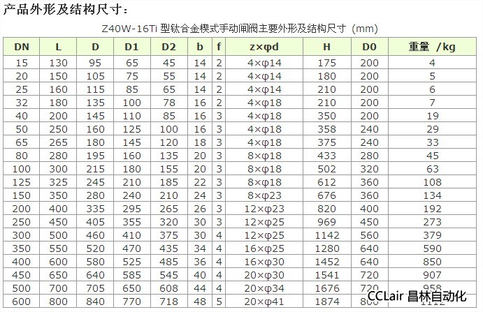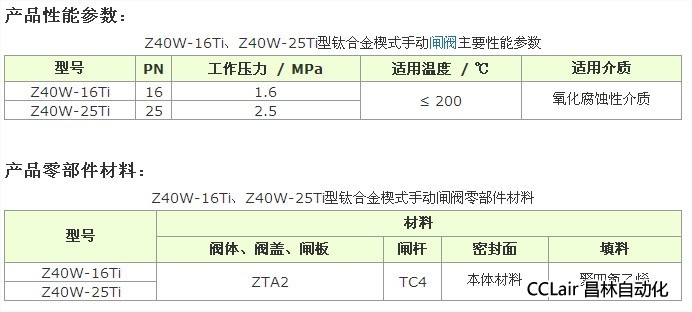 產(chǎn)品說明 Z40W-16Ti、Z40W-25Ti 型鈦合金楔式閘閥:手動、法蘭連接、明桿楔式彈性閘板,閥座密封面材料為鈦合金,工作壓力 1.6-2.5MPa,閥體材料為 ZTA2 鈦合金的閘閥。因為鈦和氧有很好的親和力,極易與氧反應而在其表面生成一層堅固而致密的鈍性氧化薄膜,對許多腐蝕介質都呈現(xiàn)出特別優(yōu)異的耐腐蝕性。