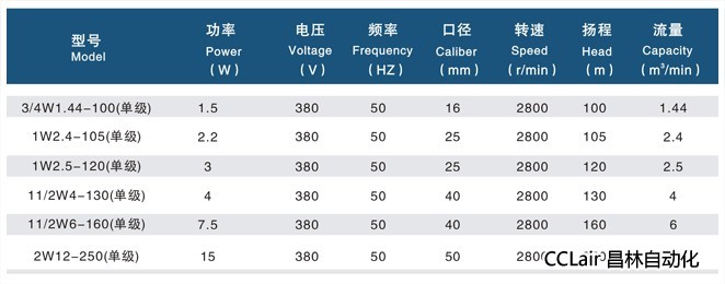 3/4W1.44-100(單級(jí)),1W2.4-105(單級(jí)),1W2.5-120(單級(jí)),
