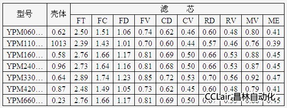 4、額定流量下的清潔濾芯壓降(單位:1×10