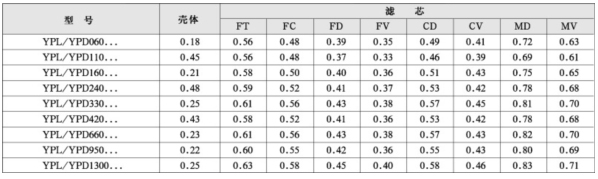 4. 額定流量下的清潔濾芯壓降(單位:1×10