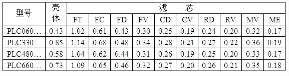 4、額定流量下的清潔濾芯壓降(單位:1×105Pa 介質(zhì)參數(shù):30mm2/s 0.86kg/dm3)