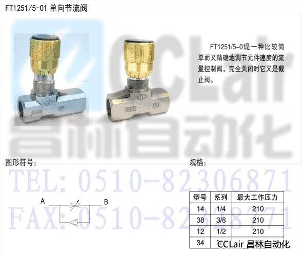 FT1251/5-01,管式單向節(jié)流閥