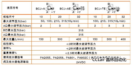 BCJ是錐閥型先導(dǎo)式比例減壓閥,閥的二次壓力與輸入電信號(hào)成正比。此類閥工作時(shí)是通過(guò)電子放大器提供比