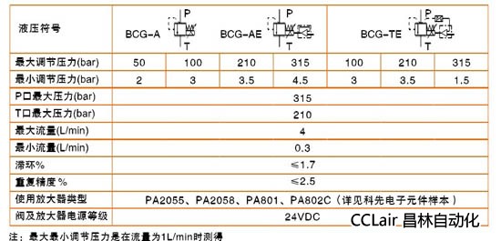 BCG是錐閥型直動(dòng)式比例溢流閥,閥的壓力與輸入電信號(hào)成正比。此類閥工作時(shí)是通過電子放大器提供比例電磁鐵