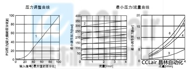 注:1=流量在1 L/min時(shí)測(cè)得的壓力調(diào)整曲線;2=流量在1 L/min時(shí)使輸入信號(hào)變化測(cè)得:3=O輸入信號(hào)時(shí)BCG-A02-