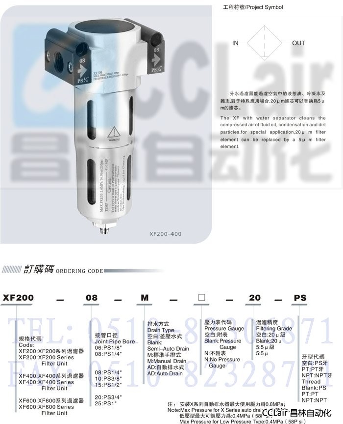XF200-06,XF200-08,XF400-08,XF400-10,XF400-15,XF600-20,XF600-25,過濾器 |