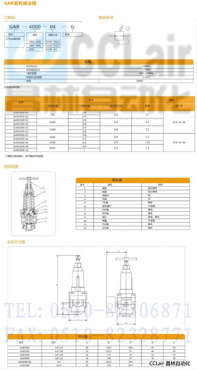 GAR2000,GAR2500,GAR3000,GAR4000,GAR4000-06,GAR5000,減壓閥
