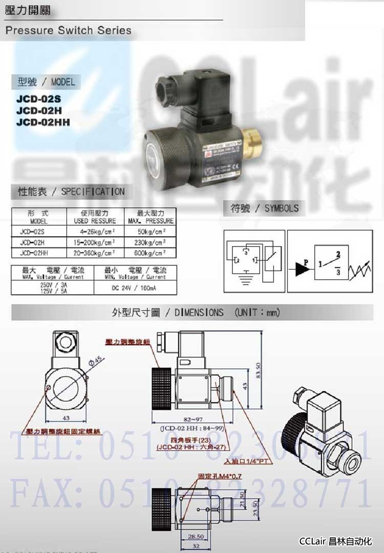 JCD-02S, JCD-02H, JCD-02HH,壓力開閥