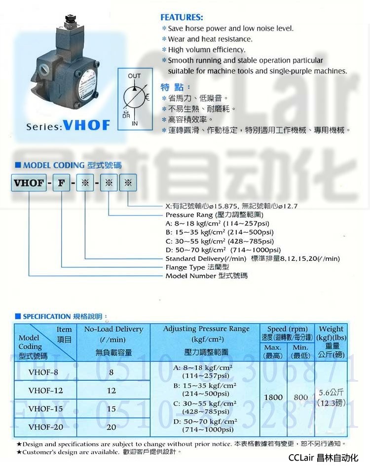 VHOF-08,VHOF-12,VHOF-15,VHOF-20,變量泵浦