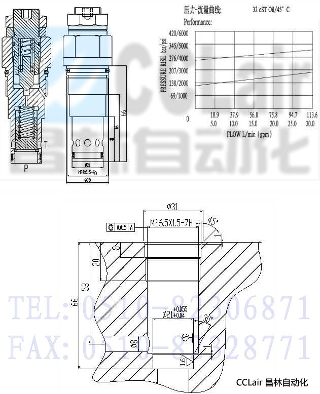 當(dāng)P口壓力未達(dá)到彈簧設(shè)定壓力的90%時(shí),P到T不通超過90%并繼續(xù)升高時(shí),P到T開始溢流,直到彈簧的最高設(shè)定壓力。