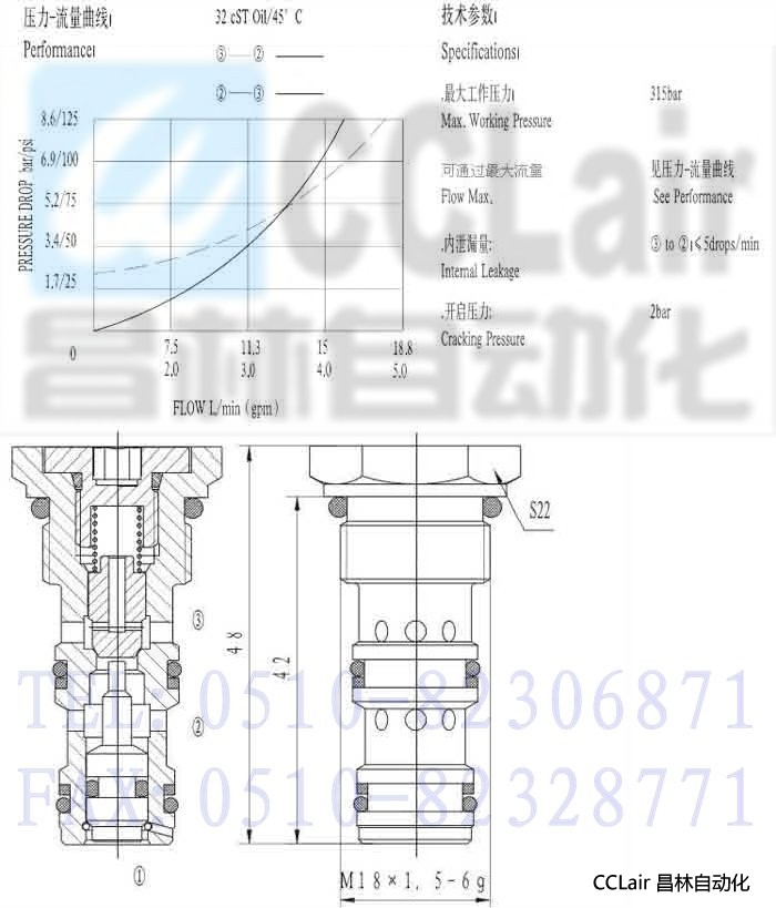 產品名稱: 液控單向閥 產品型號: LCKD-06-11 最大流量: 18L/min 最大工作壓力: 31.5Mpa 工作過程: 允許液流以很低壓力降從②口到③口,同時阻止液流從③口到②口。當①口壓力足夠大克服彈簧力和液壓力后,允許液流從③口到②流動。 機能符號: