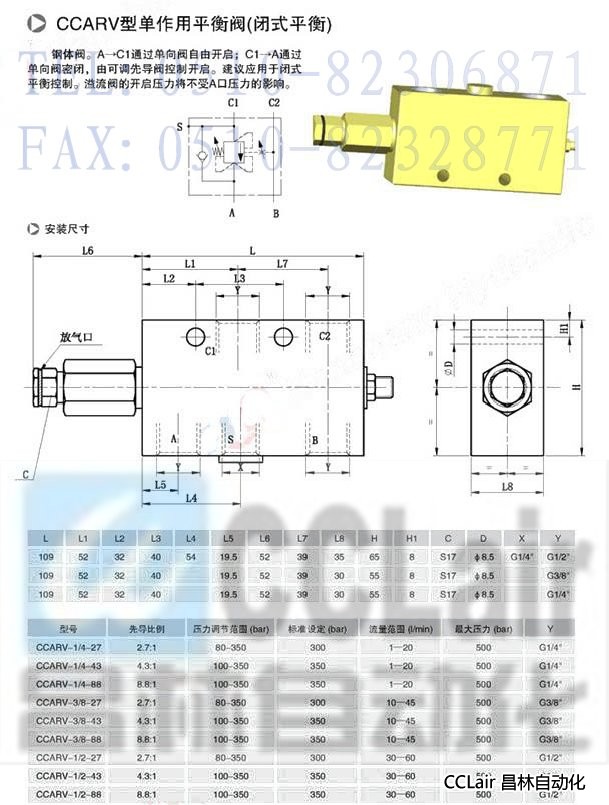 CCARV-1/4-27,CCARV-1/4-43,CCARV-1/4-88,單作用平衡閥(閉式平衡)